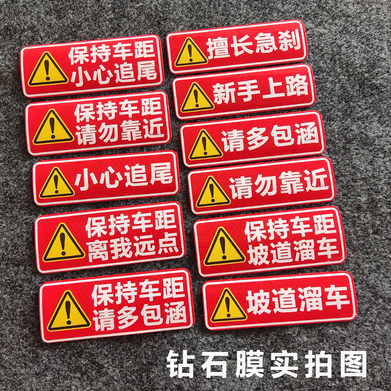 📚 汽车尾部车贴纸保持距离汽车用品反光装饰贴纸 注意急刹 保持车距