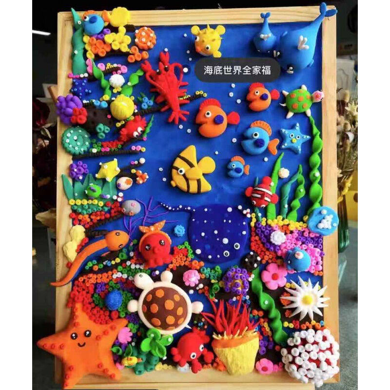 📚 森尼熊超轻粘土手工作品成品海底世界黏土浮雕画彩泥太空泥可定制