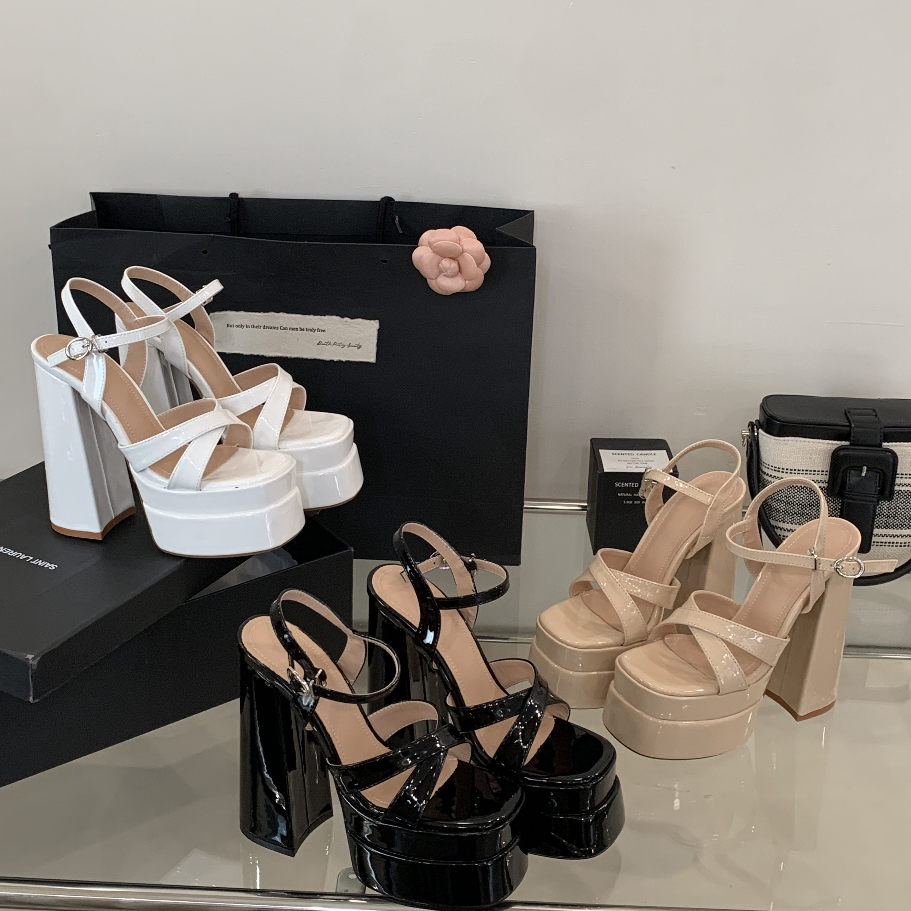 📚 15cm超高跟鞋防水台厚底凉鞋夏2025年新款小个子增高一字扣带凉鞋