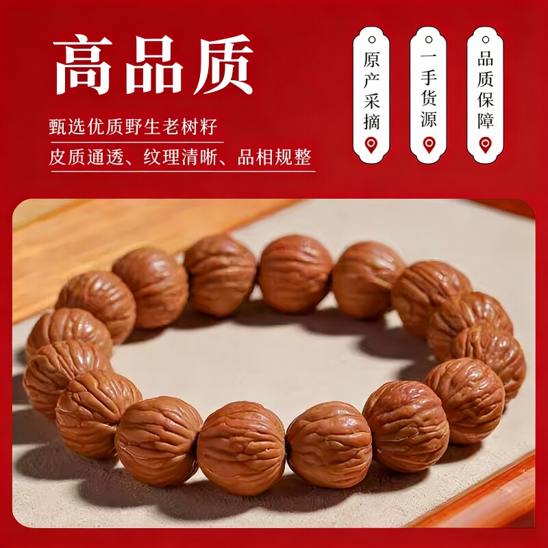 📚 天然野生猴头凤羽无修原籽桃核文玩单圈佛珠圆珠盘玩多规格可选