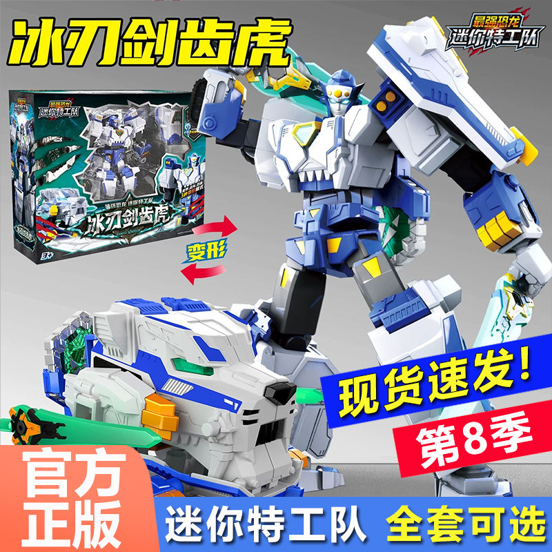 📚 迷你特工队8最强恐龙战士冰刃剑齿虎机甲变形机器人金刚男孩玩具