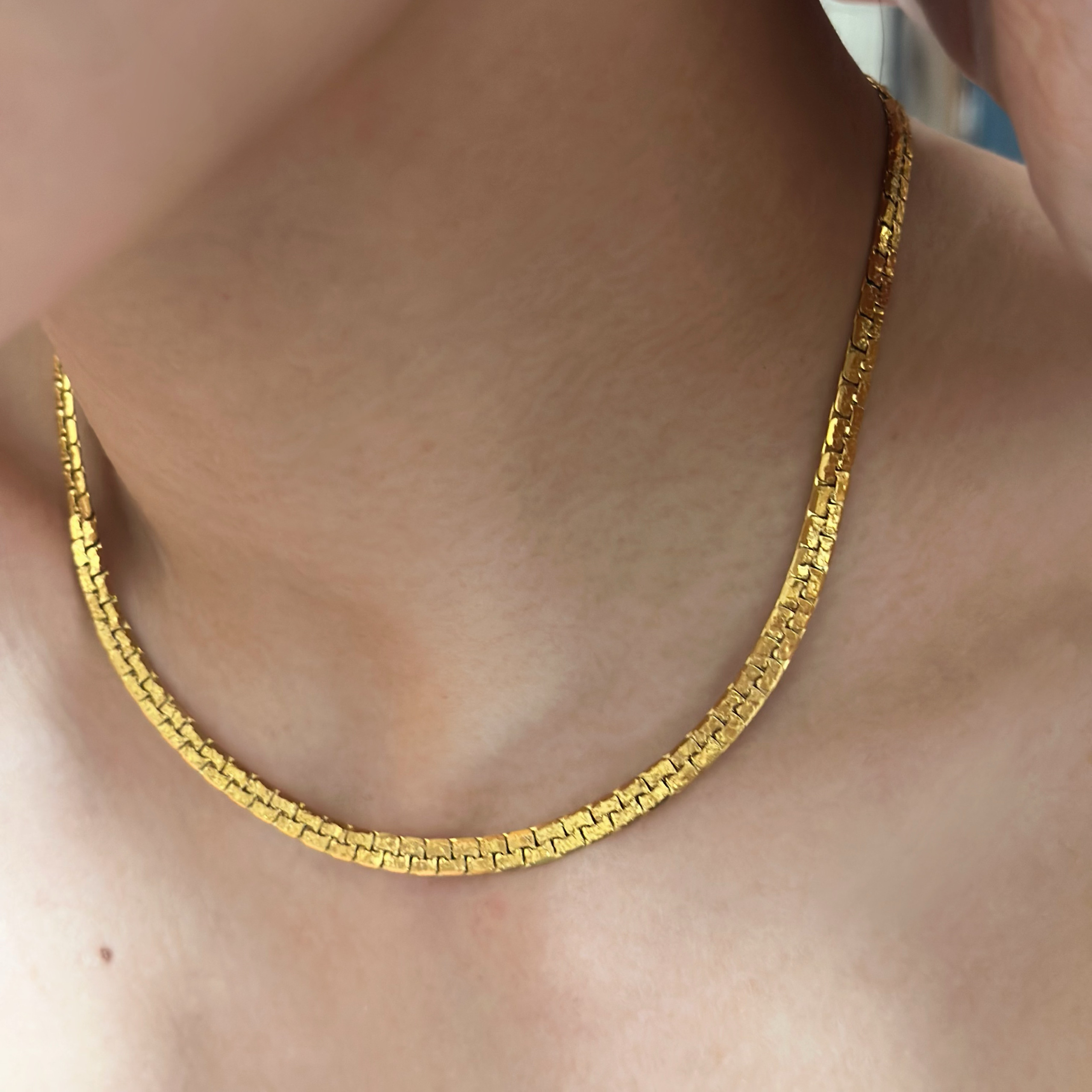 📚 734钛钢镀18k金古法金碎冰冰锁骨欧美蛇骨波光粼粼项链