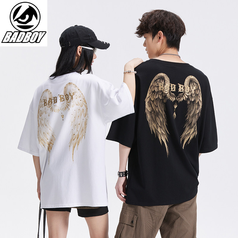 📚 BADBOY官方正品暗夜金羽情侣款潮牌朋克短袖T恤烫金老鹰翅膀新款