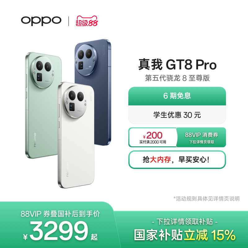 47¥ HU287 Pnie5hulsgv¥ https://m.tb.cn/h.iJCPndJ 【享6期免息】OPPO真我GT8 Pro新款新品第五代骁龙8至尊版2亿长焦理光GR影像学生拍照游戏手机realme官方正品 --------------------- 【原售价】3,999元 【现售价】3,999元。