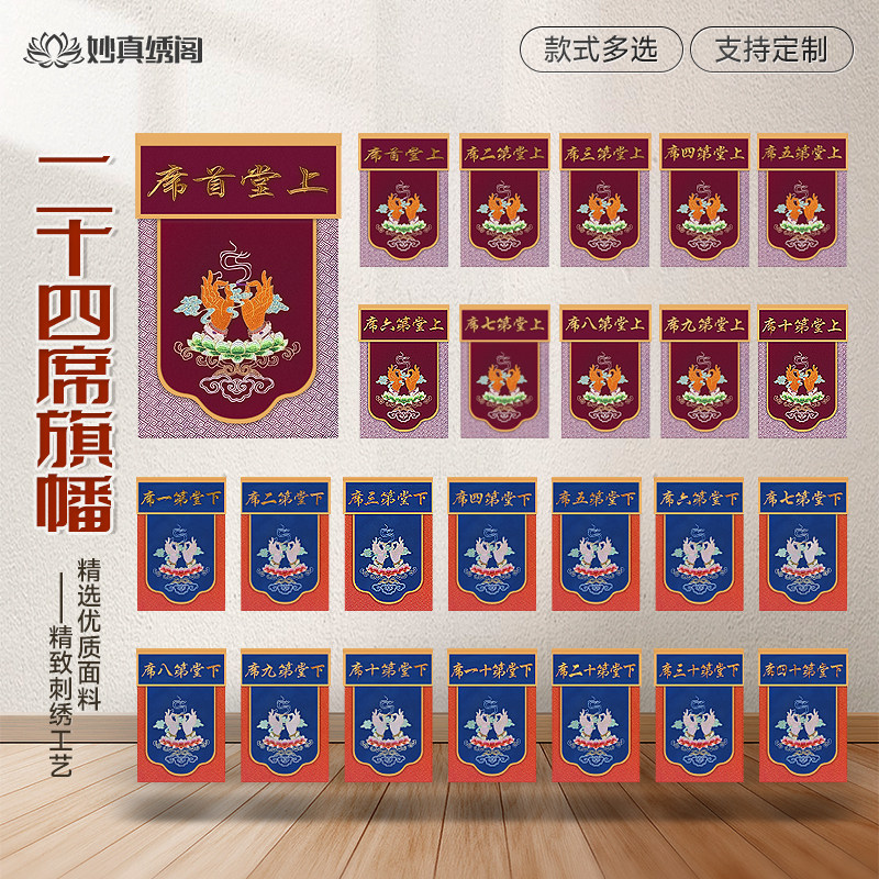 📚 高档缎布幡二十四席幡水陆内坛请送圣幡戒定真香旗幡桌围刺绣