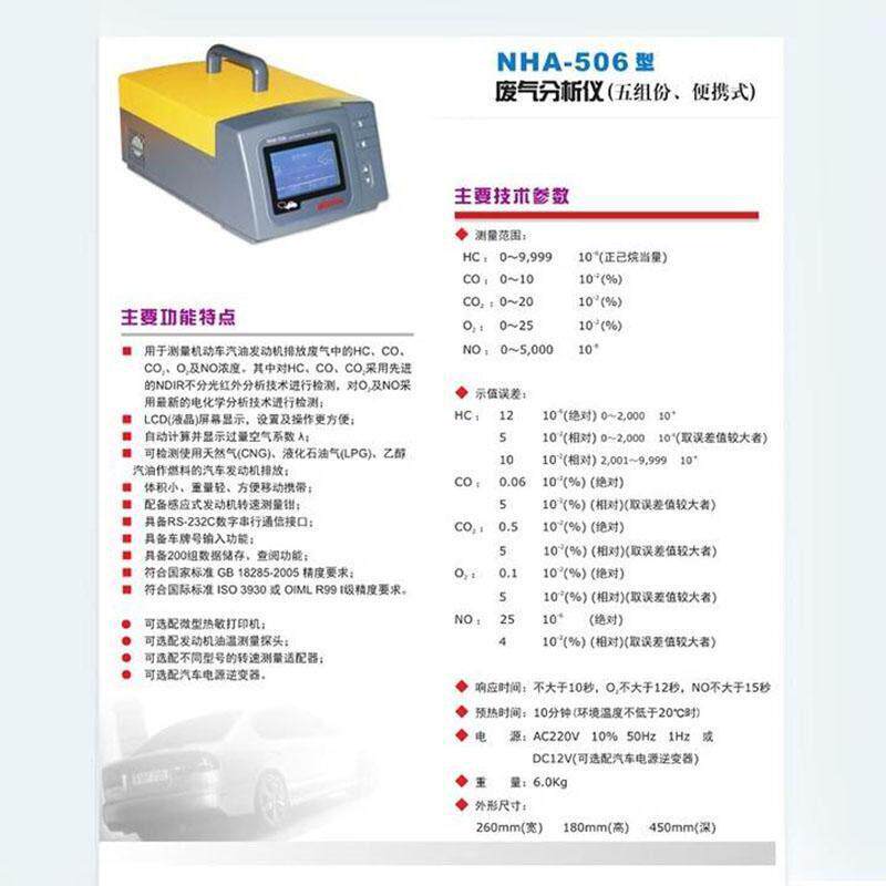 📚 南华NHA-506可携式汽车尾气分析仪废气浓度汽车年尾气排放检测仪
