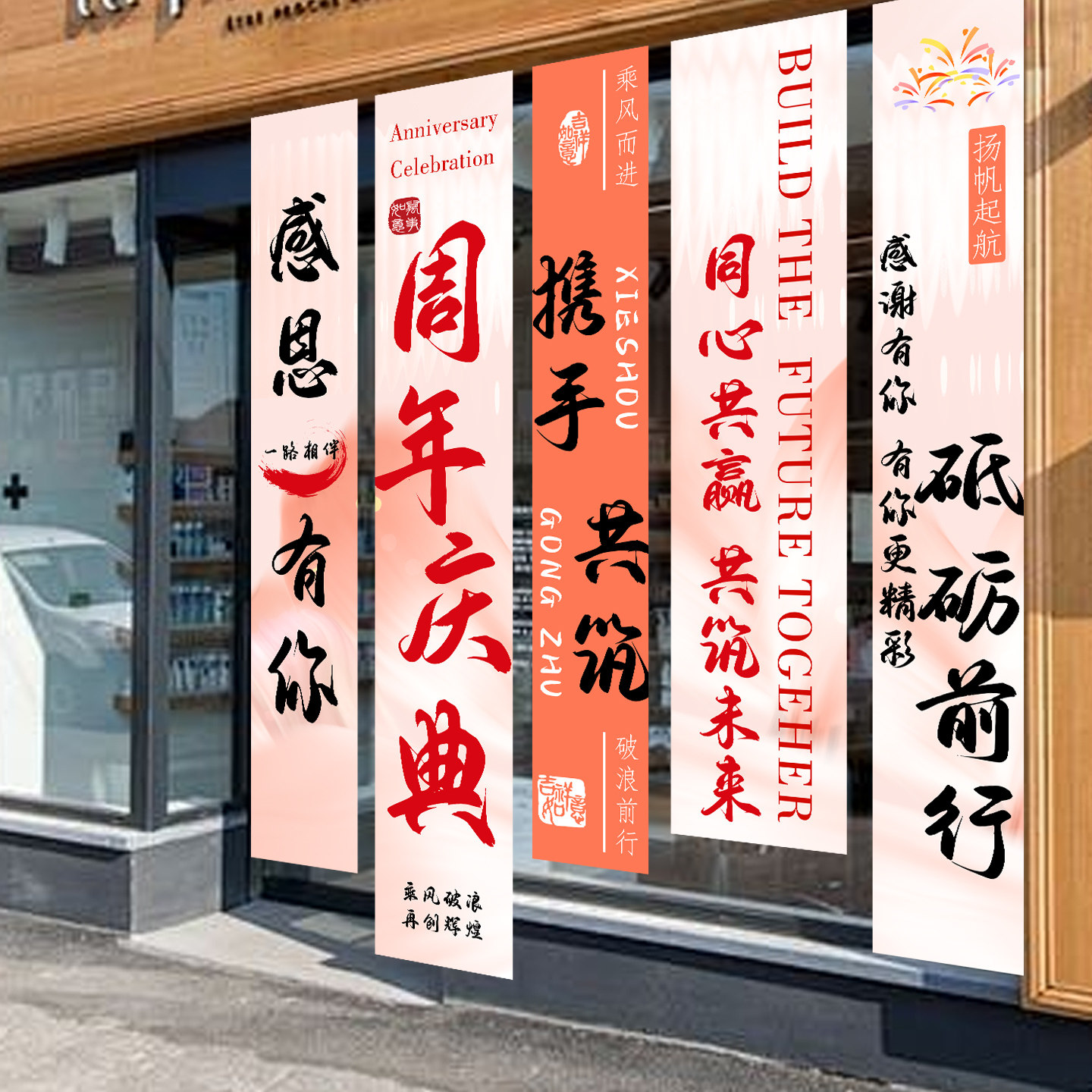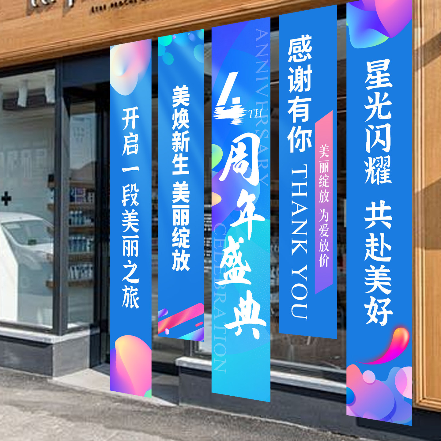 📚 周年庆场景布置氛围装饰店里挂布条幅学校活动公司前台美容院布置