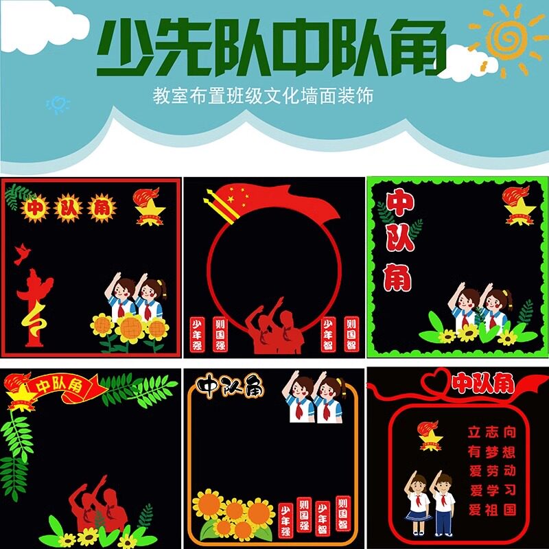📚 小学中队角少先队员班级文化墙布置墙贴毛毡无纺布黑板报装饰材料