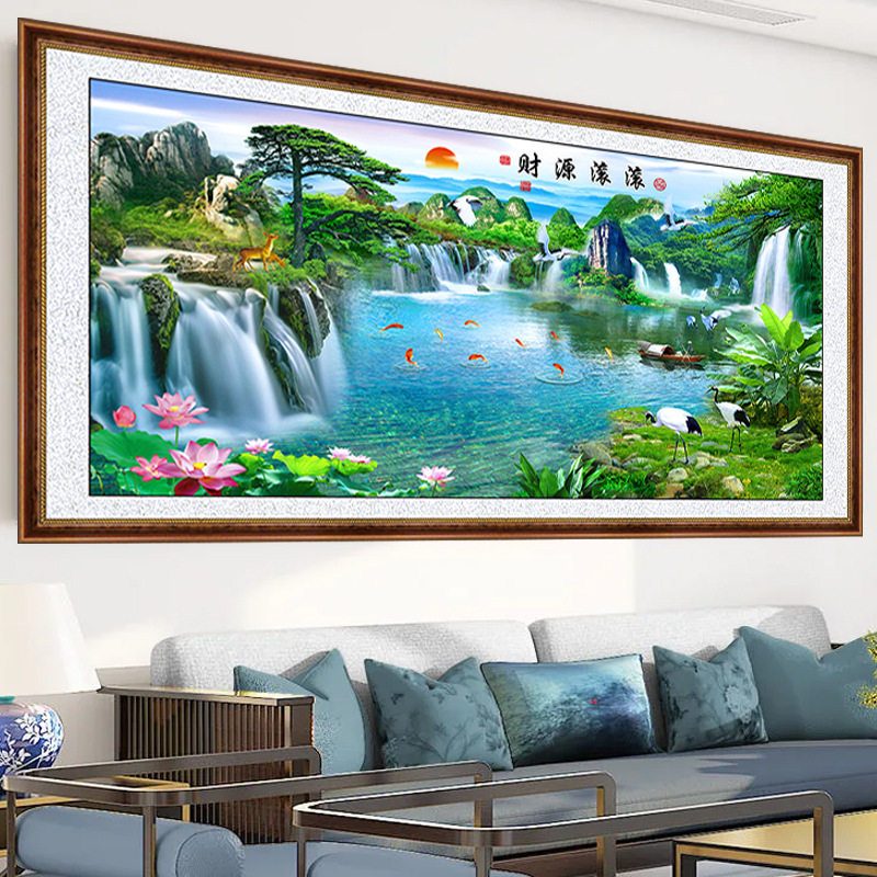 📚 3D仿真假框山水画年画客厅沙发背景装饰画家和万事兴墙贴自粘壁画