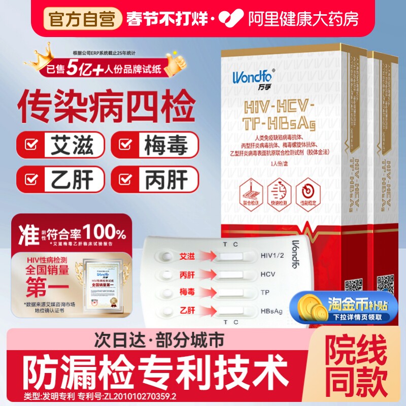 📚 万孚hiv四合一艾滋病检测试纸自检自测梅毒传染病四项四联六合一