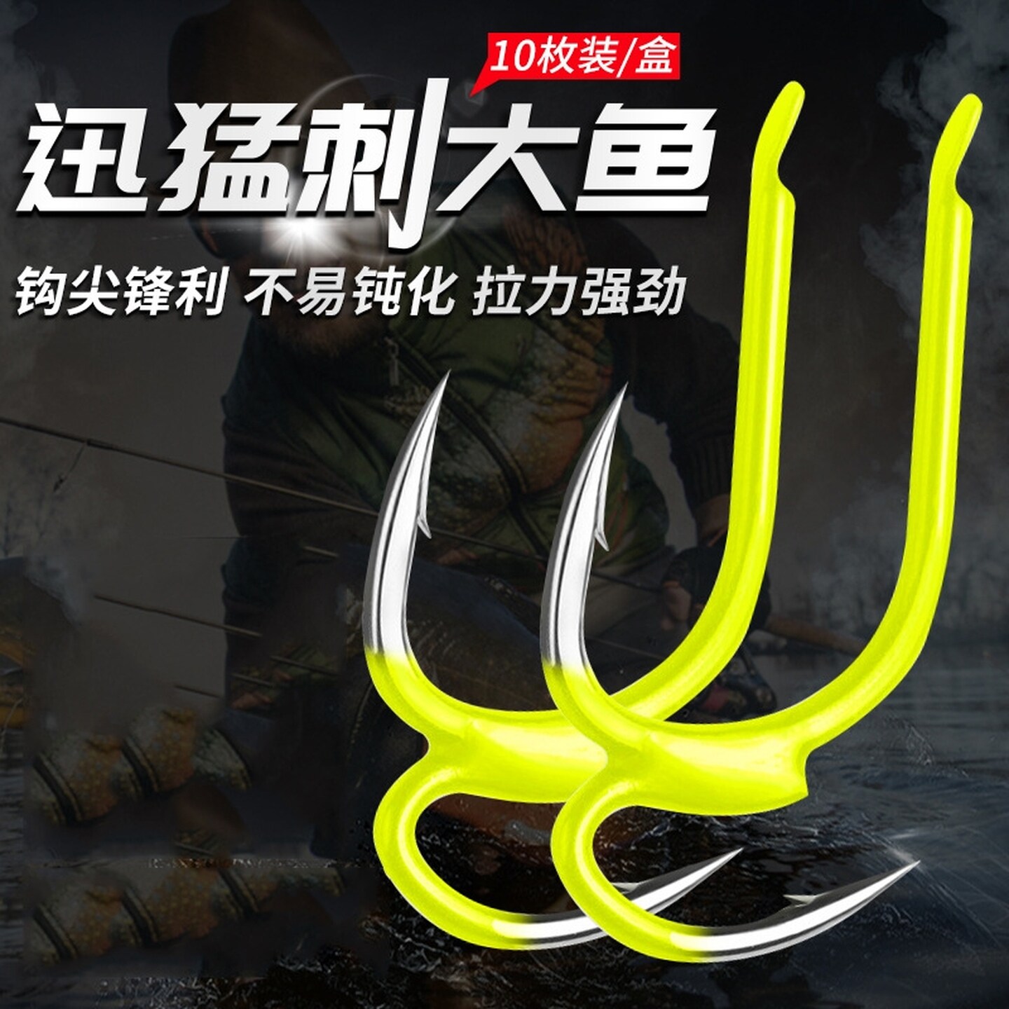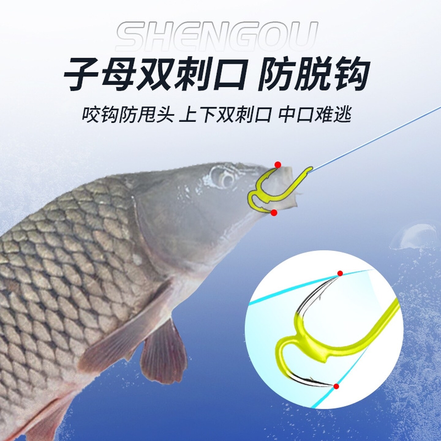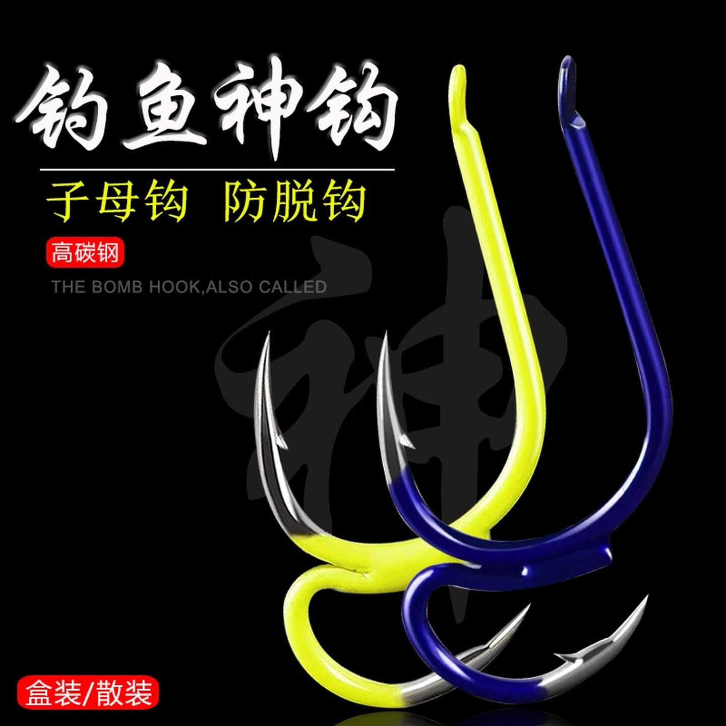 📚 二代子母双钩防脱神钩高碳钢伊势尼有刺适用水库池塘大物荧光鱼钩