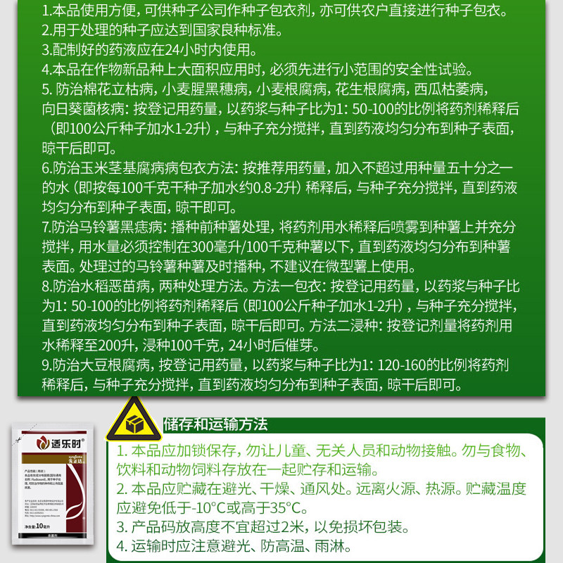 🍀这款拌种剂的特点非常明显,不仅能有效防治小麦根腐病、立枯病菌核病,还能为作物提供全方位的保护。每次使用都感觉像给作物穿上了“保护衣”,让它们健康茁壮成长。