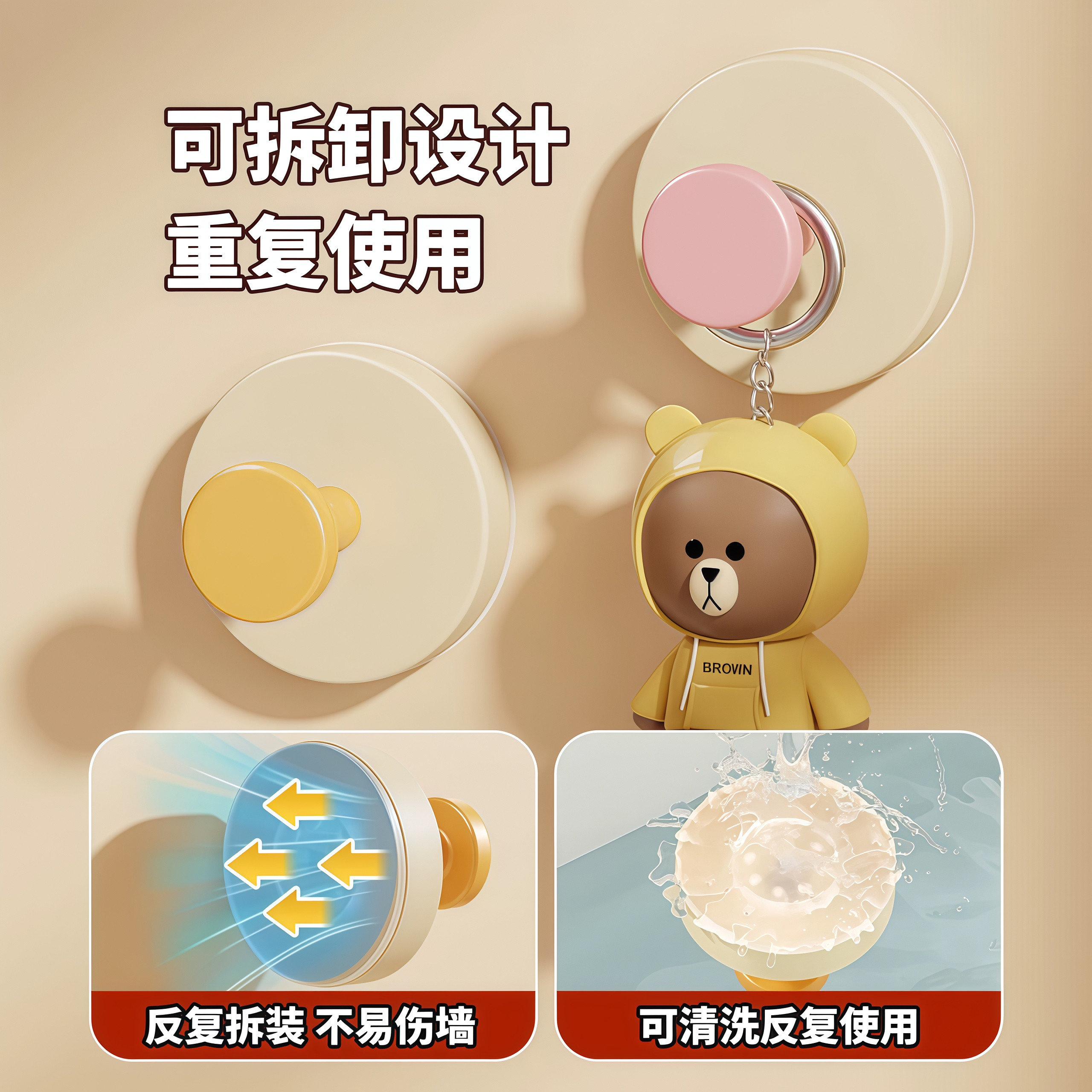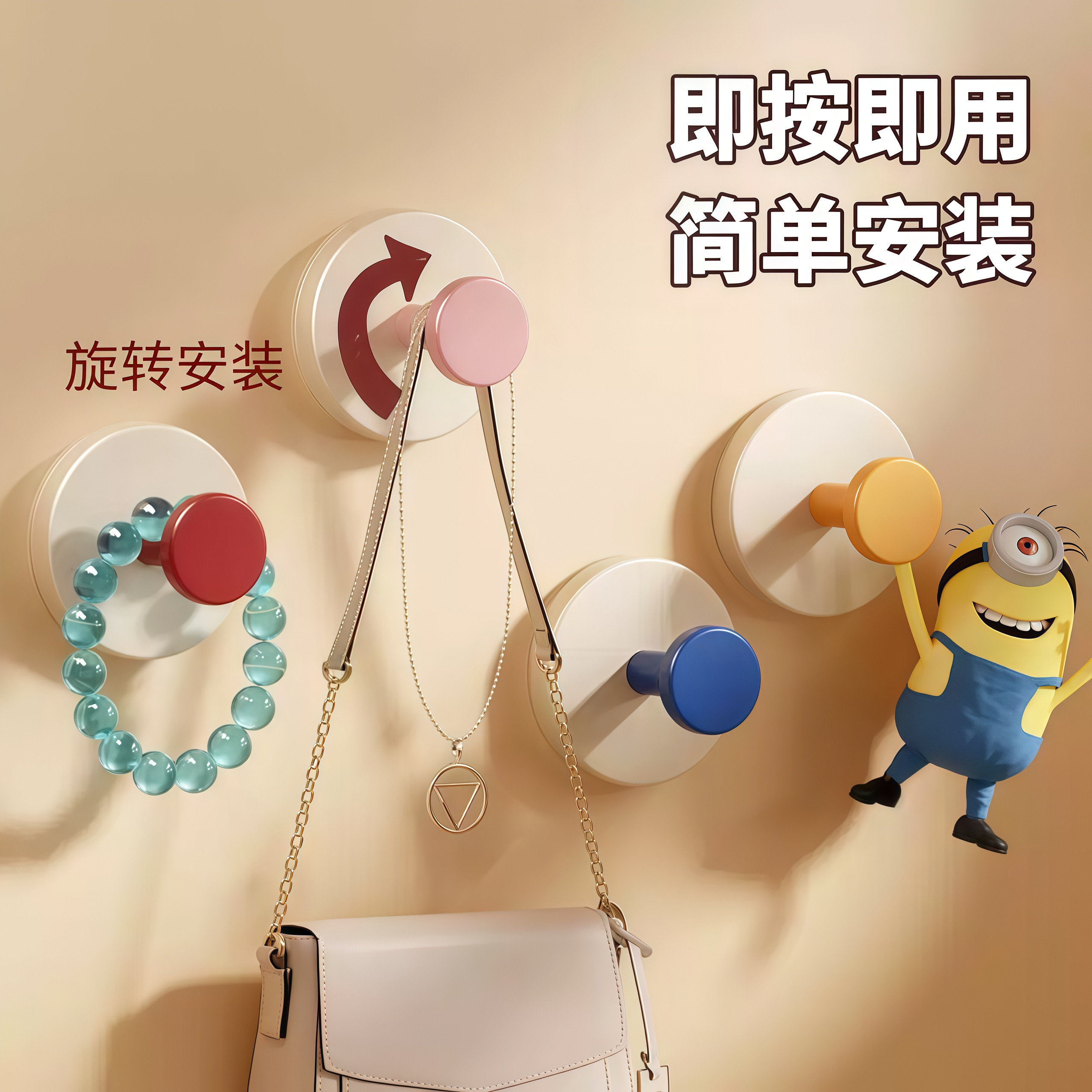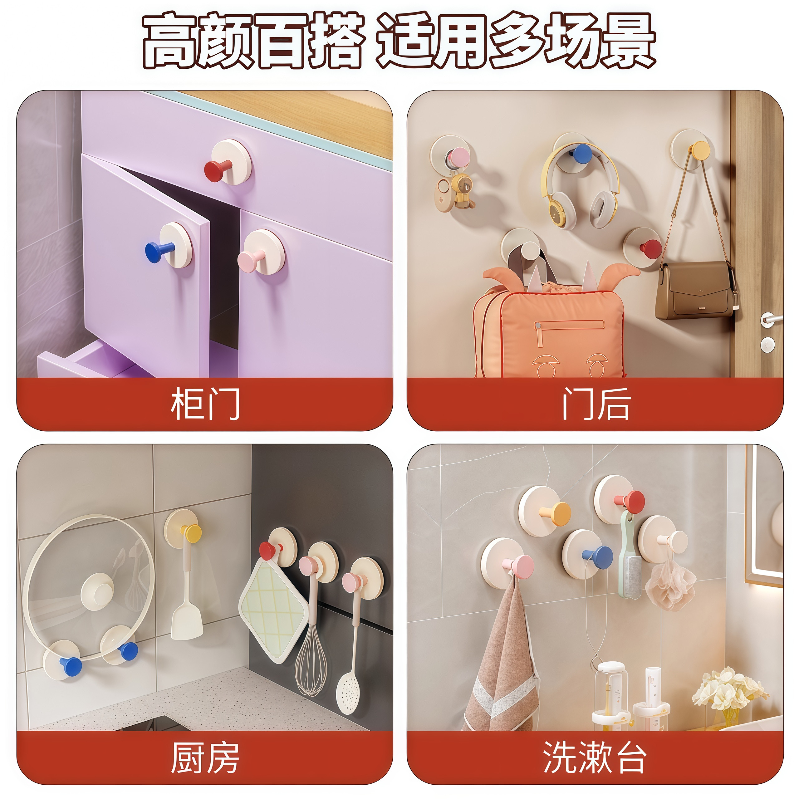 📚 多巴胺吸盘挂钩免打孔强力承重粘胶玄关门后挂衣架钥匙收纳神器