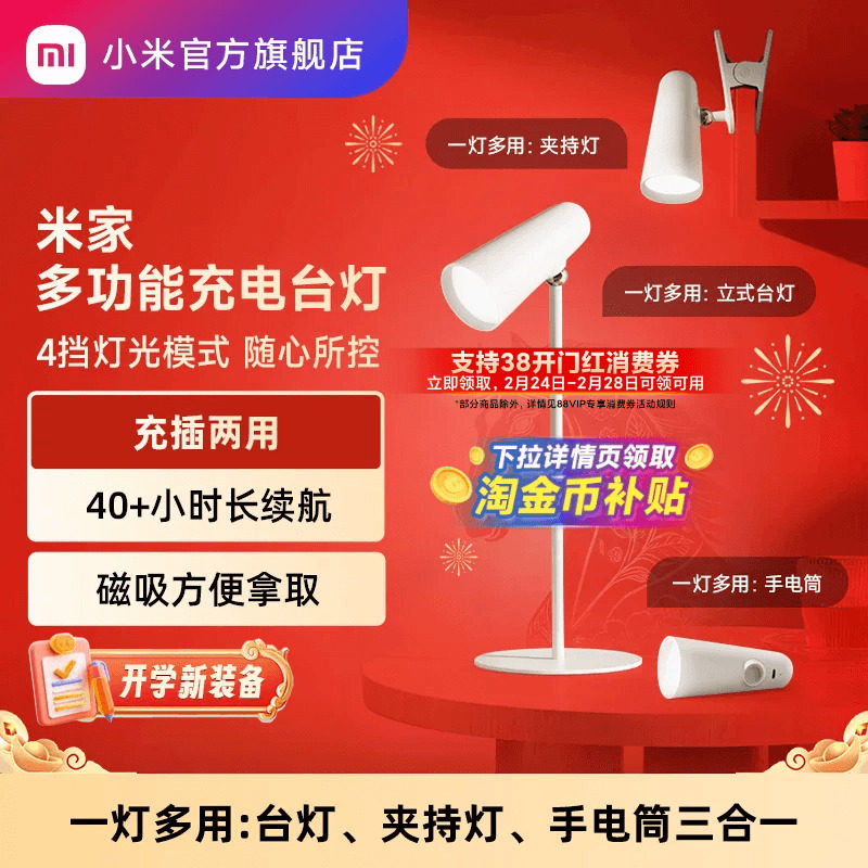 📚 小米米家多功能充电台灯宿舍大学生床头床上磁吸阅读学习超长续航