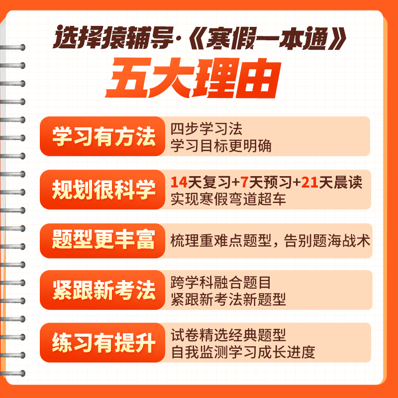 📚 2025新版猿辅导寒假一本通语文数学英语一二三年级四五六年级通用版小学生北师版人教版苏教版科学规划寒假衔接同步训练练习册