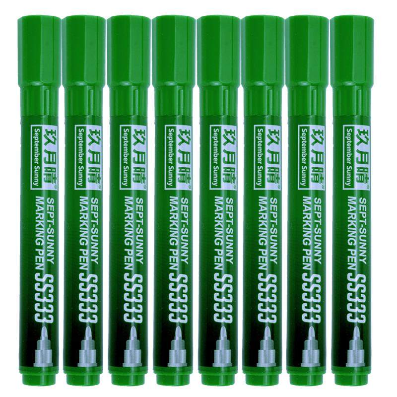 📚 绿色记号笔玖月晴油性大头记号笔不掉色大小双头油墨笔包邮10支装
