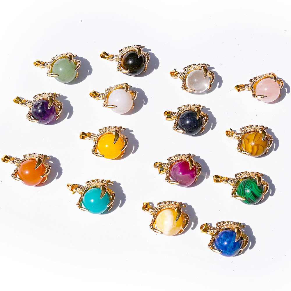 📚 天然水晶玉石龙爪圆球吊坠 紫晶青金动物鹰爪龙珠哥特风项链挂饰