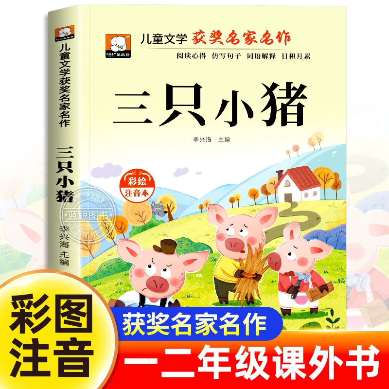 📚 三只小猪故事书彩图注音版一年级二年级阅读课外书必读老师推荐正版儿童文学读物获奖名家名作系列带拼音三只小猪盖房子绘本