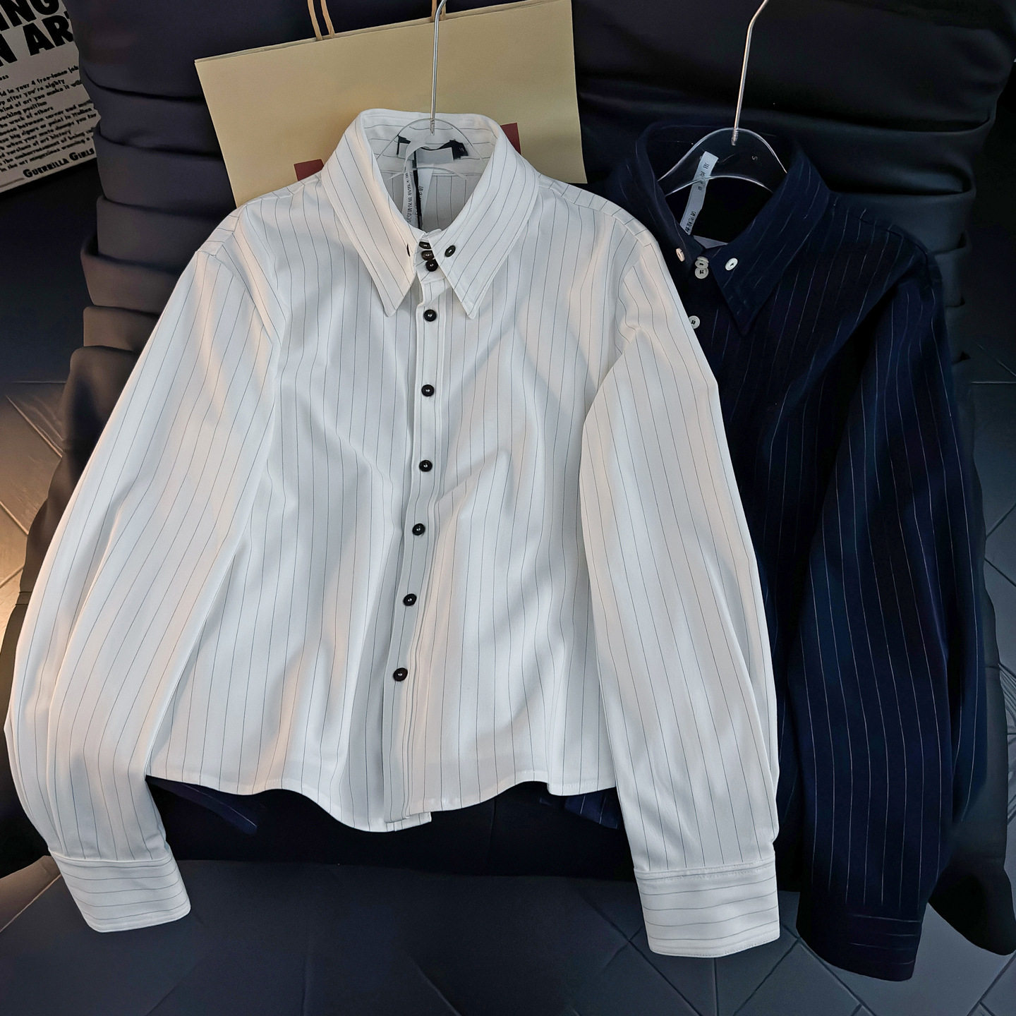 39¥ tG-#22>lD wDeX5gxBoI8¥ https://m.tb.cn/h.ioNshp9 男士白色长袖条纹衬衫男春秋季复古休闲外套2026新款宽松内搭衬衣 --------------------- 【原售价】69元 【现售价】69元。