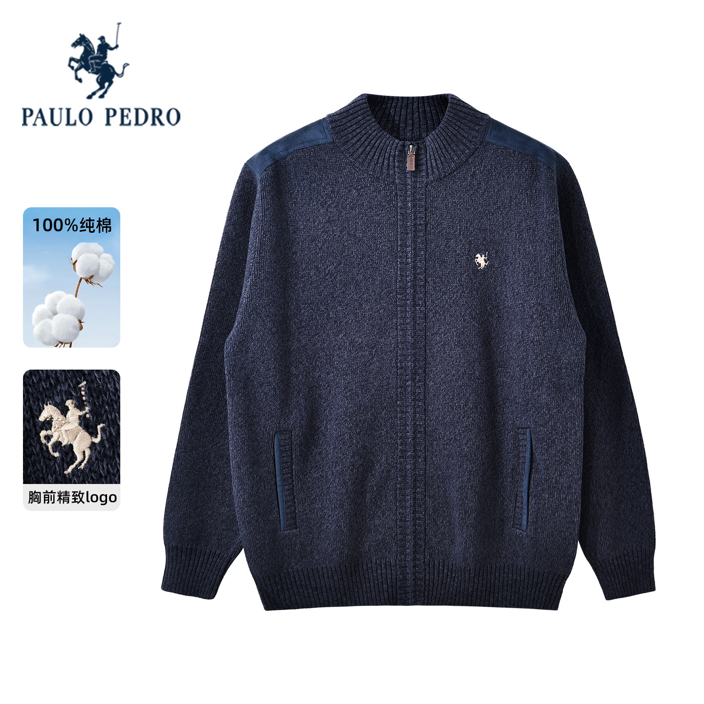 📚 保罗彼得2025秋冬男士针织衫纯棉开衫外套立领保暖毛衣MJDD48980