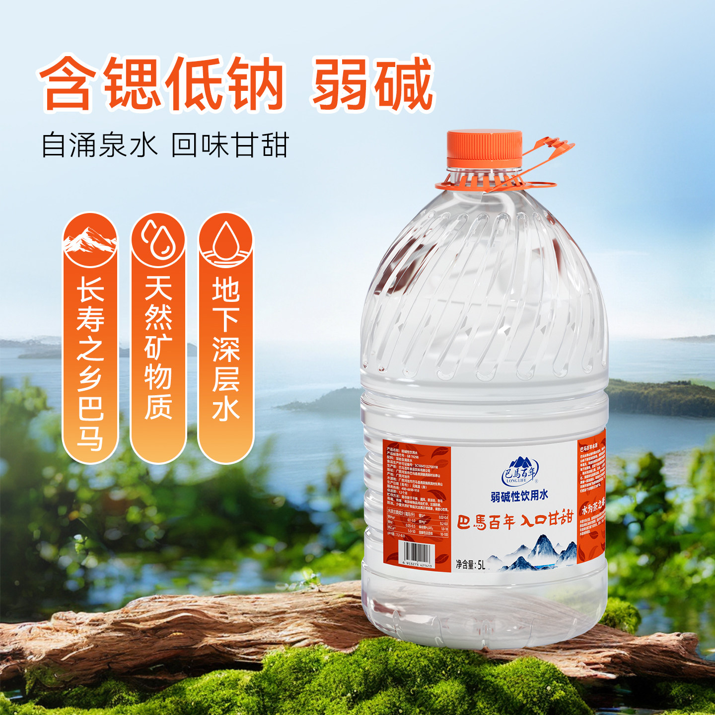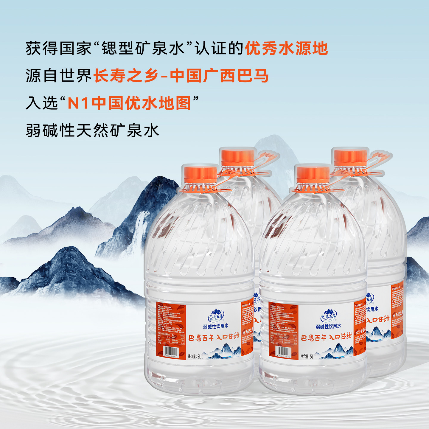 📚 巴马百年弱碱性饮用天然泉水办公家庭泡茶冲奶煮饭5L*4桶
