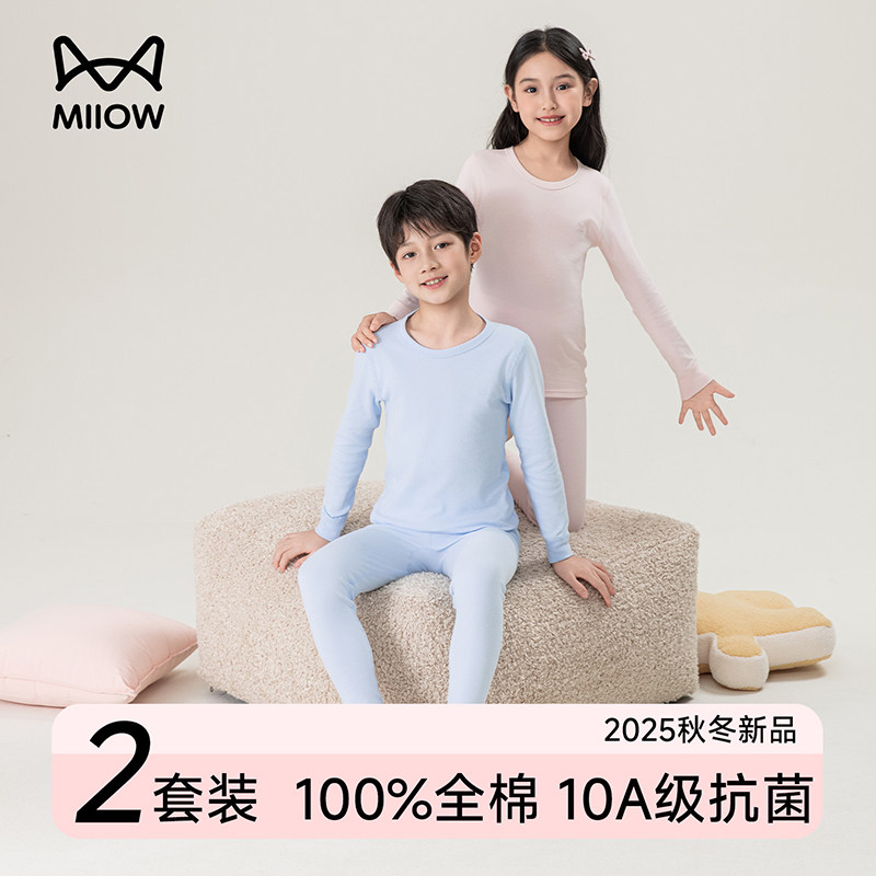 📚 猫人儿童秋衣秋裤套装100纯棉a类女童长袖内衣棉毛衫男童睡衣全棉