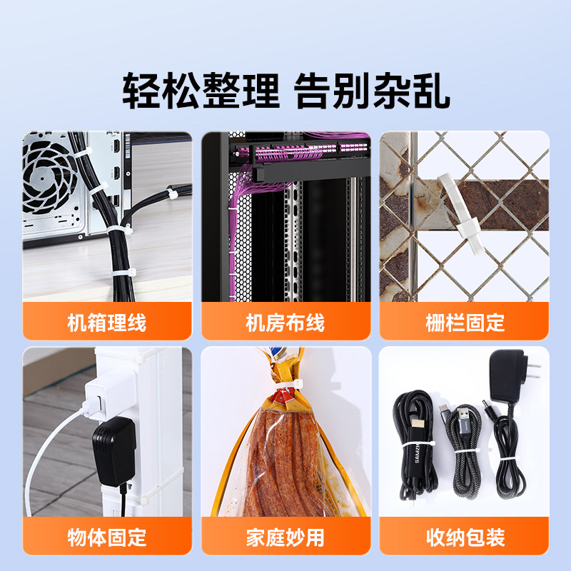 📚 山泽自锁式尼龙扎带高强度抗老化塑料捆绑带电线理线束线带耐高温