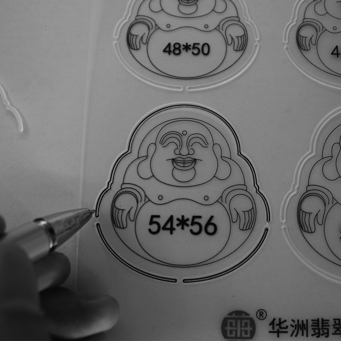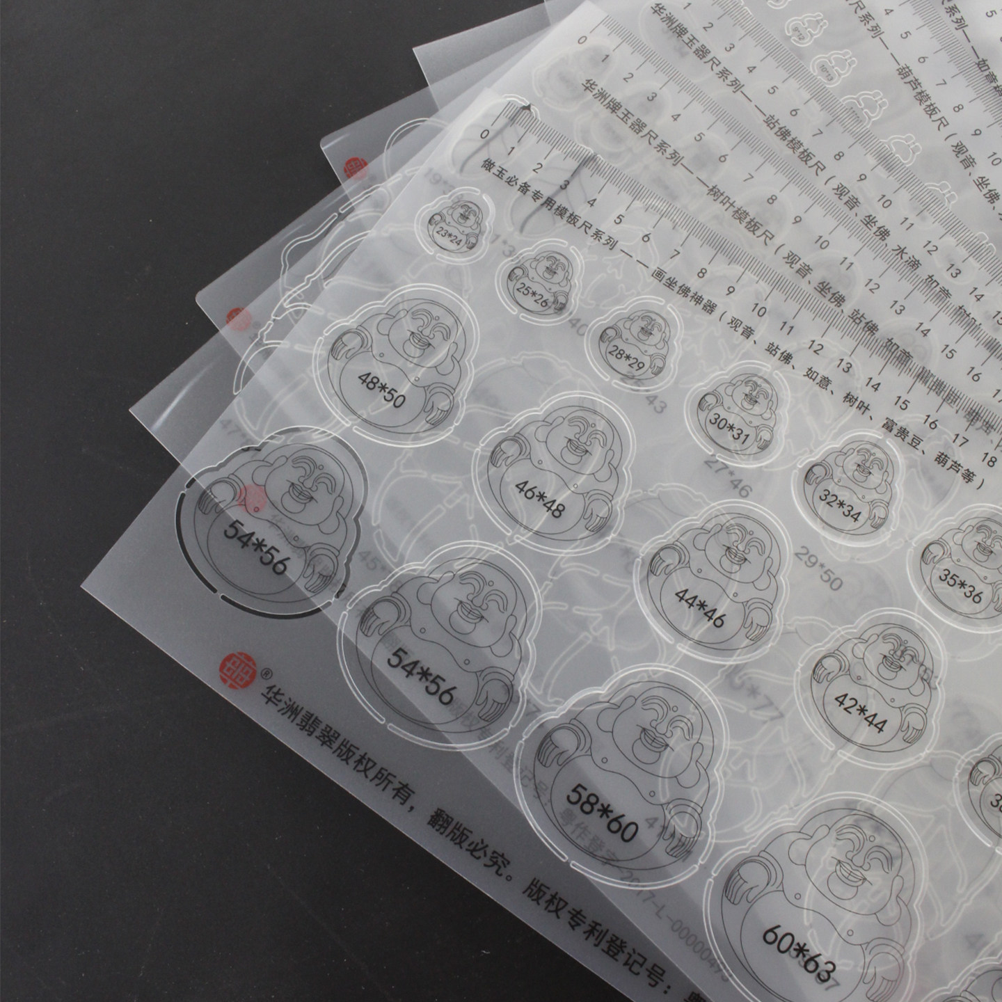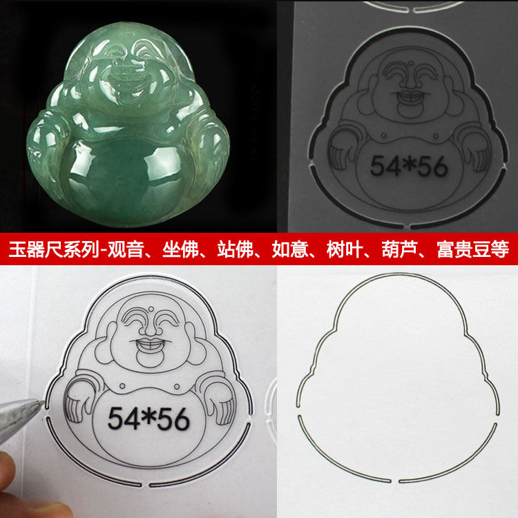 📚 玉器尺玉雕绘图模板尺子翡翠玉石雕刻画图坐佛观音树叶如意富贵豆