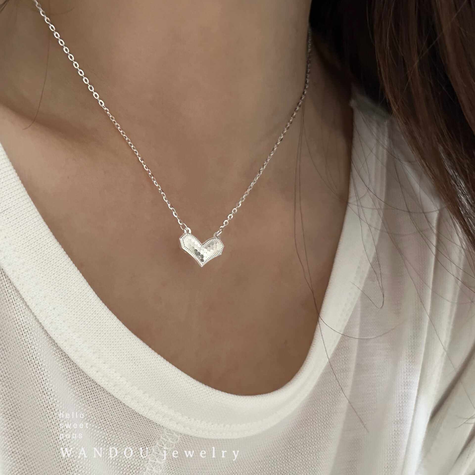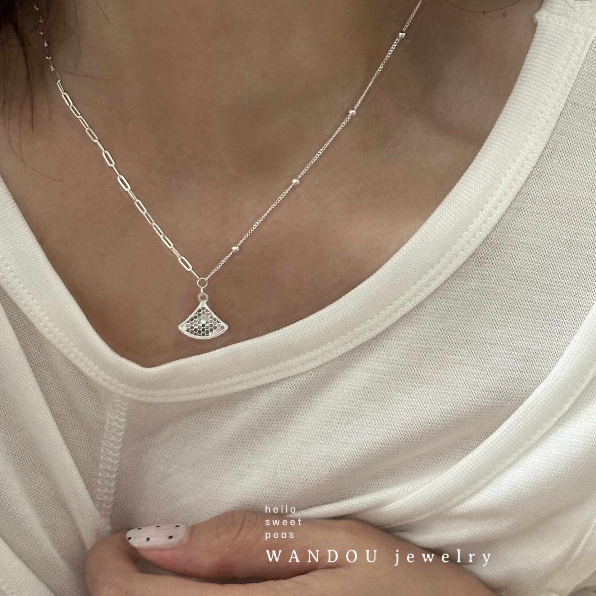 📚 S925纯银鱼鳞片蜂巢爱心小裙子吊坠项链女简约时尚百搭高级锁骨链