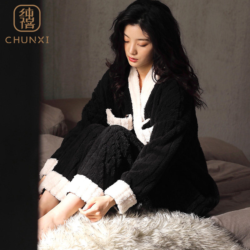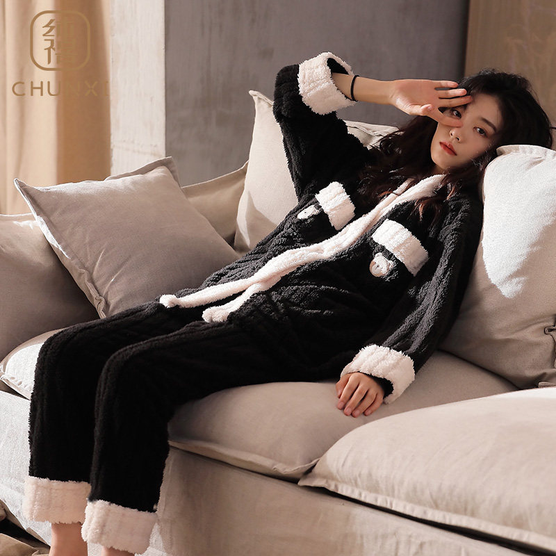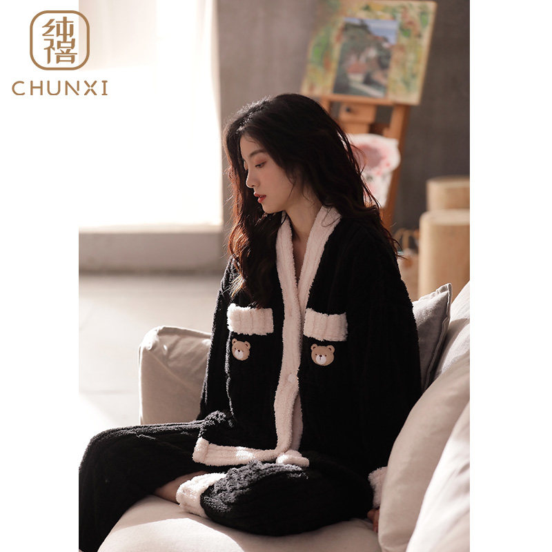 📚 睡衣女冬珊瑚绒加厚黑色2024新款家居服女士设计师款高级感可外穿