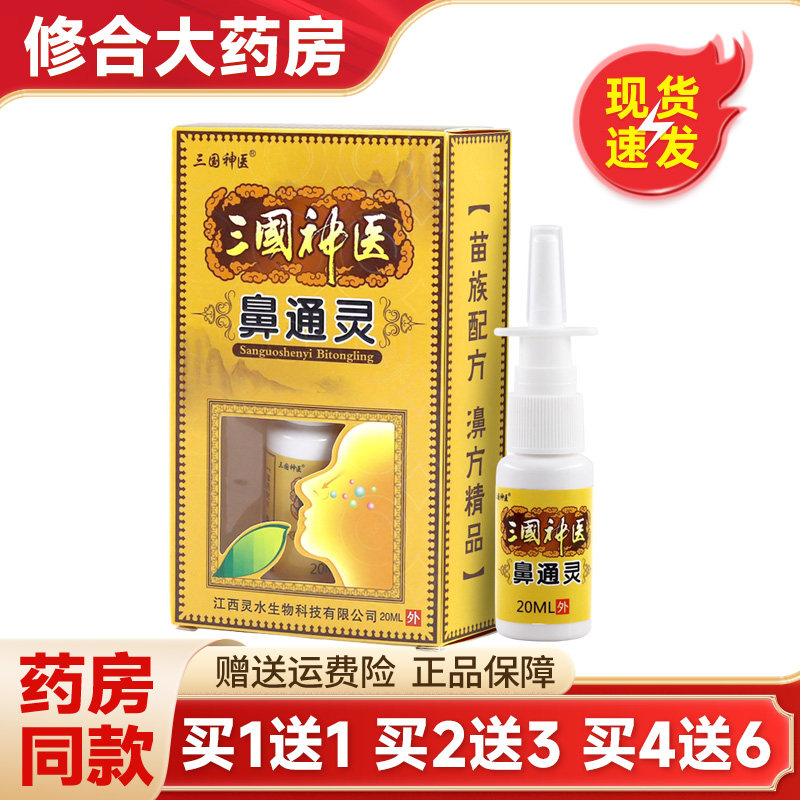 📚 【买1送1】三国神医鼻通灵抑菌喷剂20ml濞通灵喷雾鼻喷剂官方正品