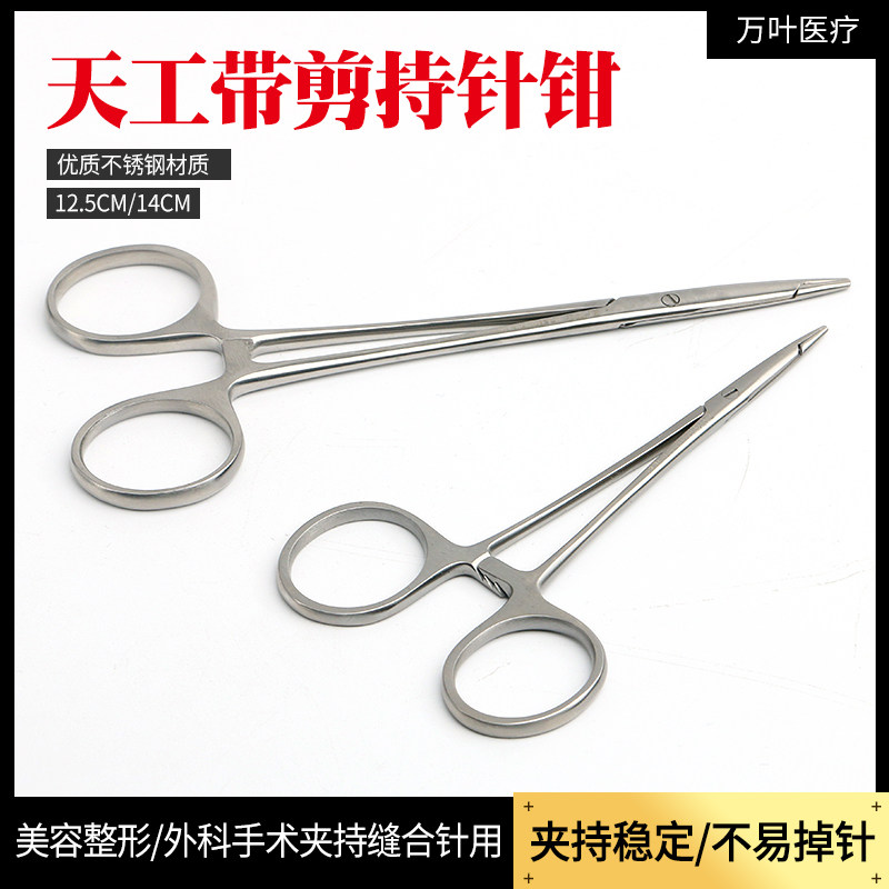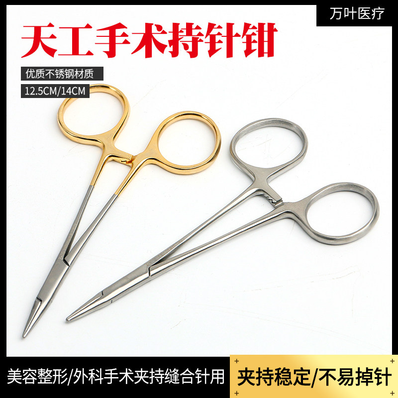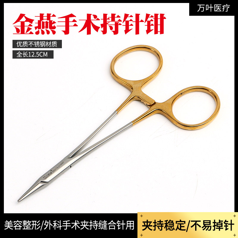 📚 天工金柄持针器带剪持针钳美容整形缝合金燕夹针器双眼皮埋线口腔