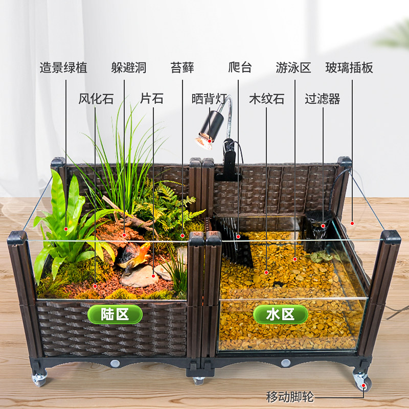 📚 乌龟生态造景玻璃缸水陆饲养缸乌龟大号养殖箱带排水内嵌龟鱼混养