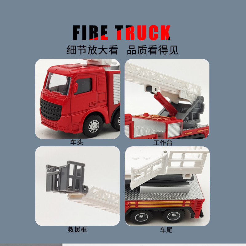 📚 钢力威合金消防车耐摔玩具车男孩仿真登高升降云梯汽车惯性工程车