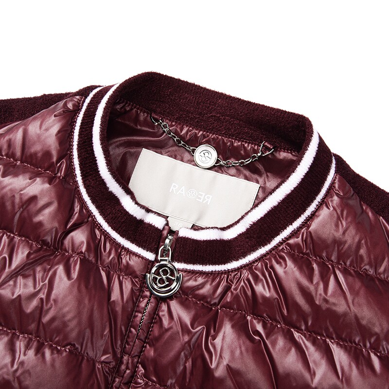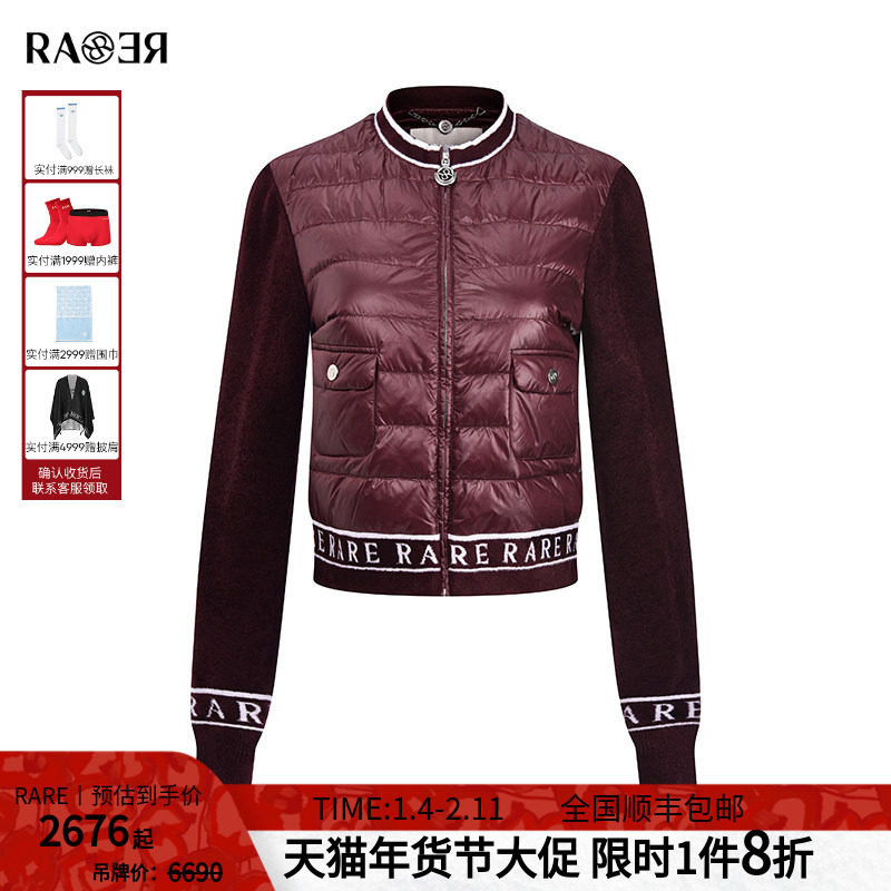 📚 RARE威雅女装 秋冬新款针梭相拼酒红休闲羽绒服RR2246130311