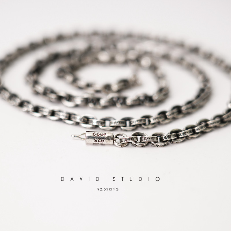 📚 David studio925纯银哥特文英文刻字链朋克机车复古风男女款项链