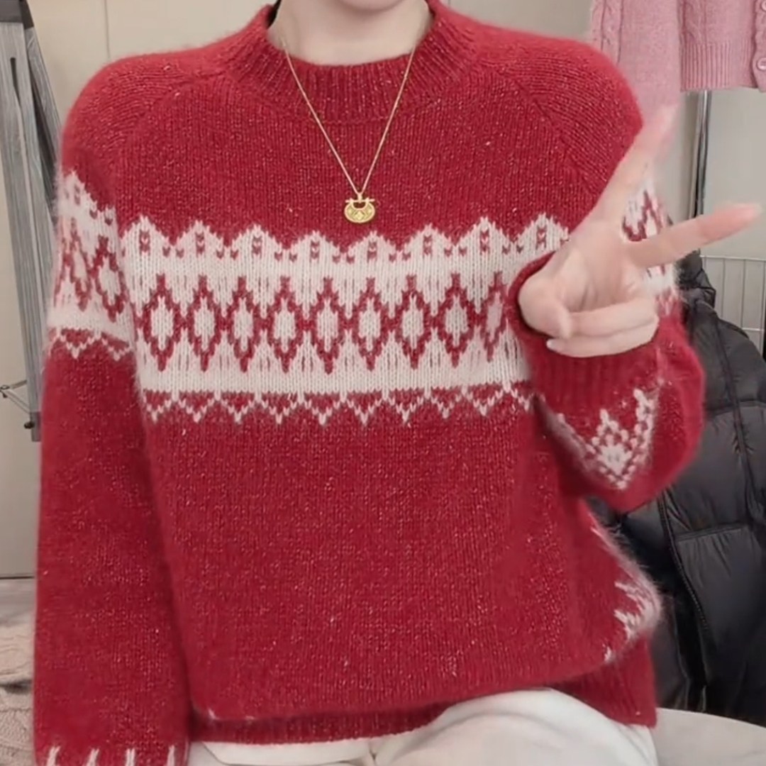 💥种草!圣诞新年战袍费尔岛风提花毛衣女,通勤新风尚💫