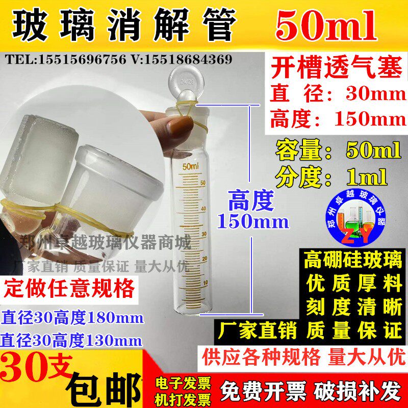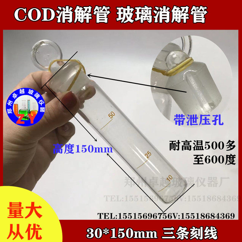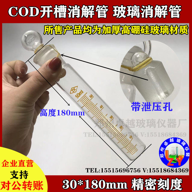 📚 玻璃消解管 耐高温带卸压孔开槽塞刻度试管50ml 电热消解仪消解管