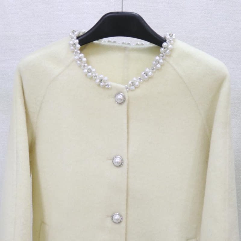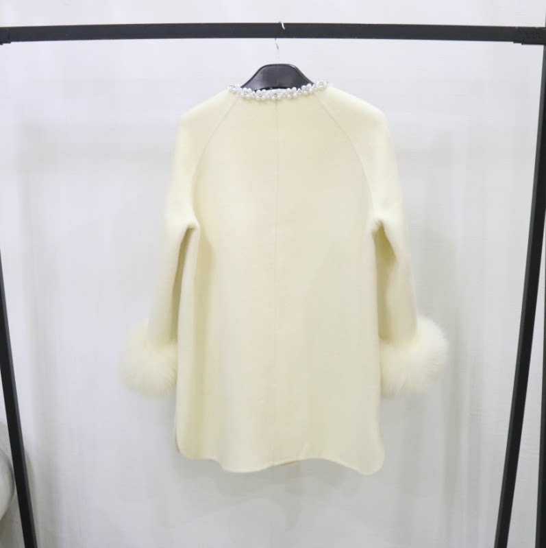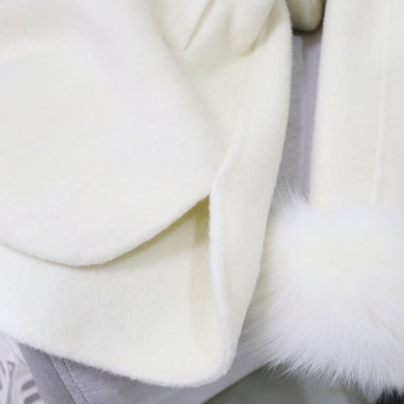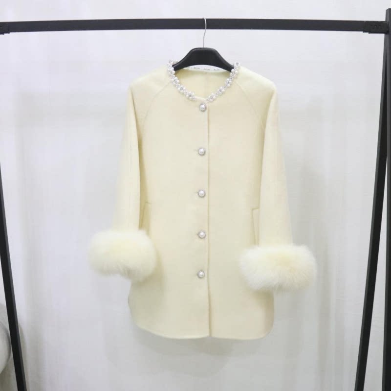📚 欧洲站新款韩系钉珠双面羊毛大衣狐狸毛皮草外套女中长斗篷双面呢