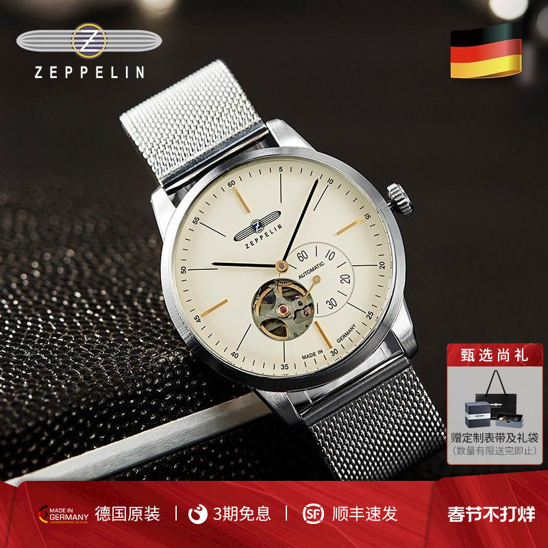 📚 Zeppelin齐博林德国手表男钢带商务腕表镂空自动机械表新年礼物