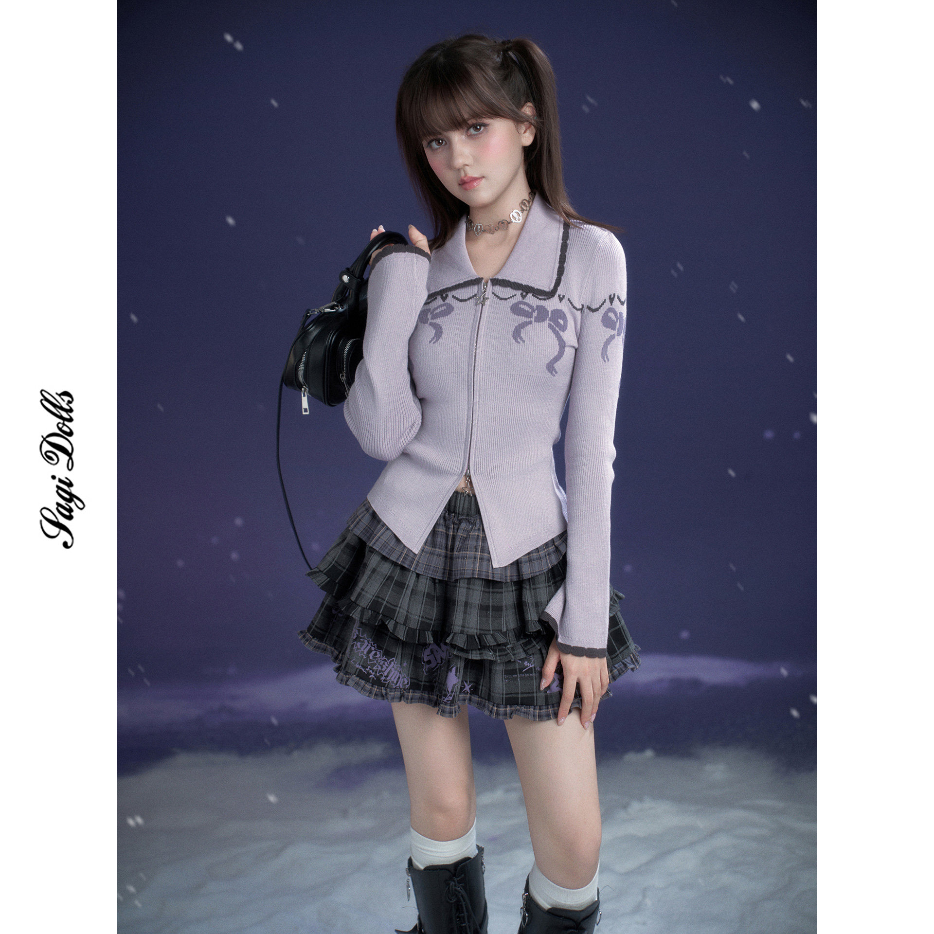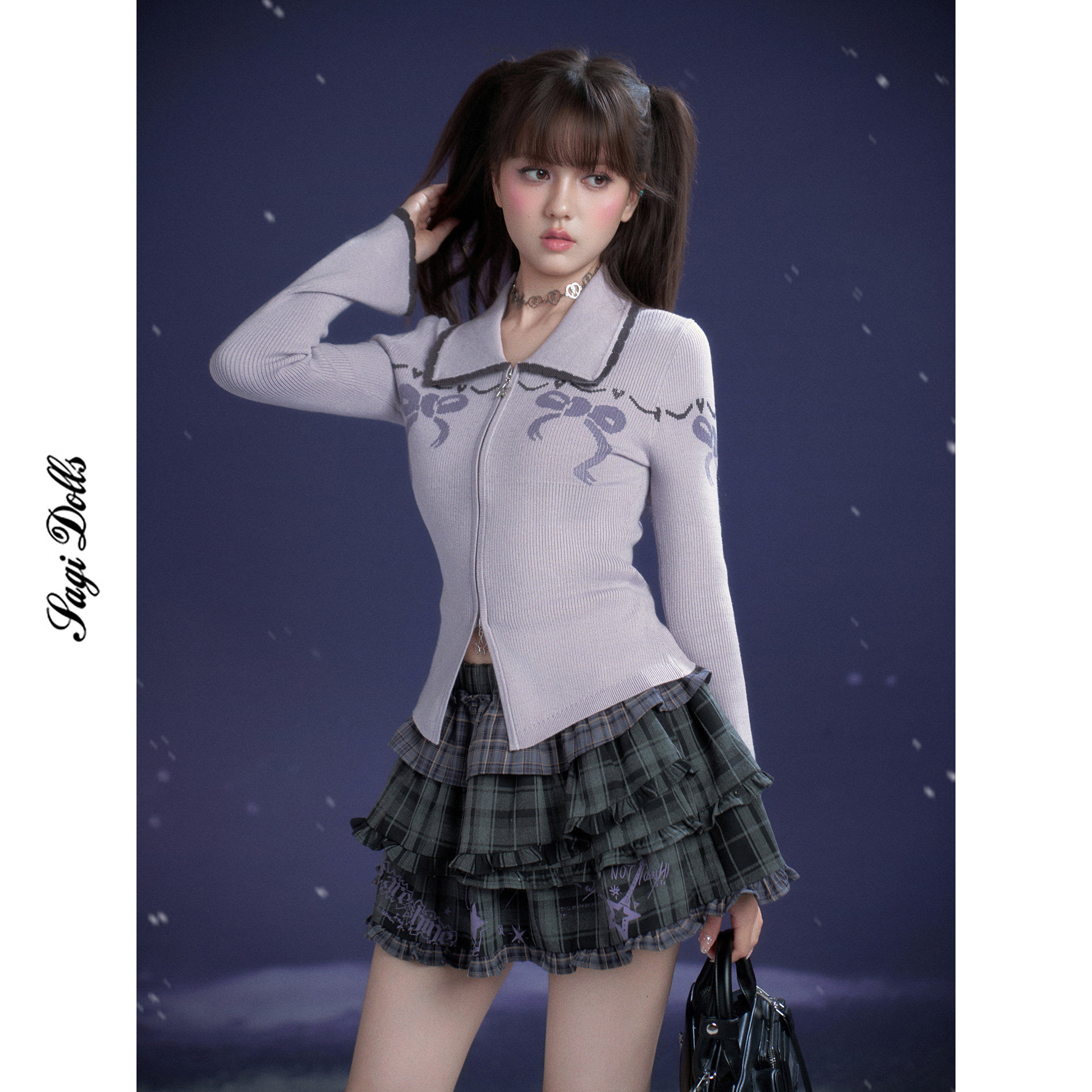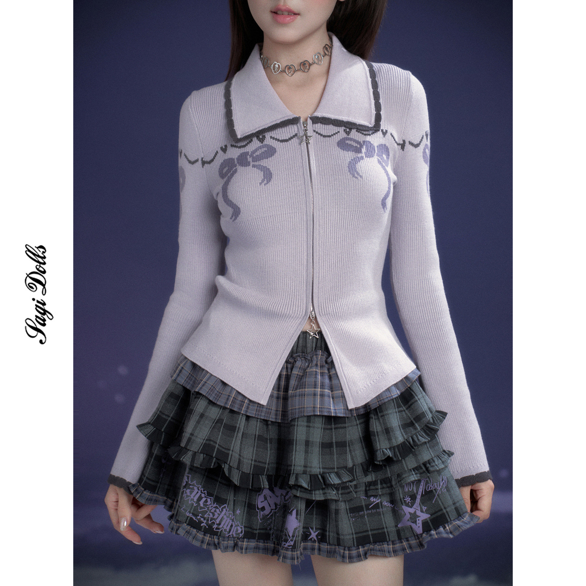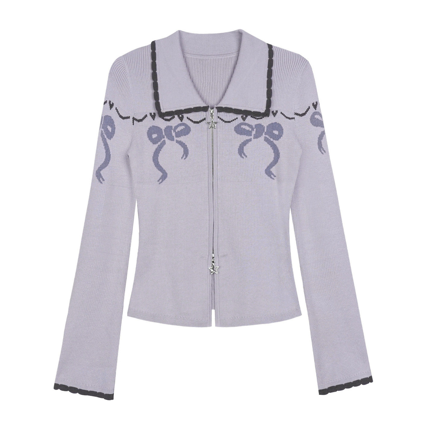 📚 SagiDolls少女斗志 #甜芋奶糖#甜美浅紫蝴蝶结提花针织衫开衫纯欲