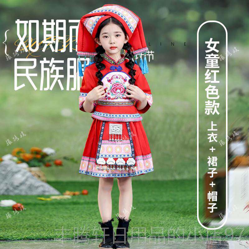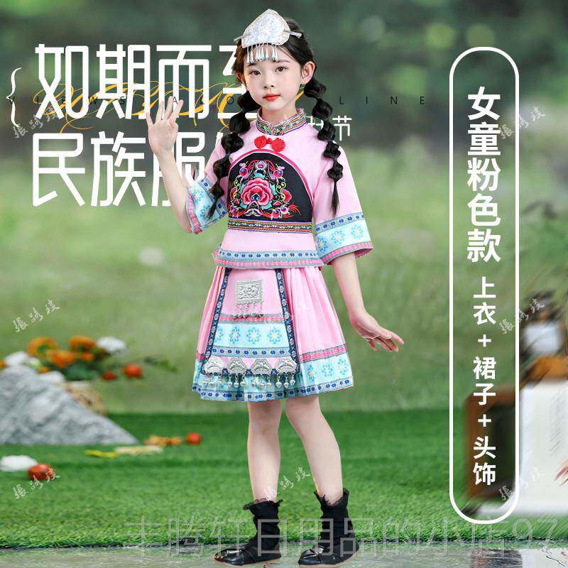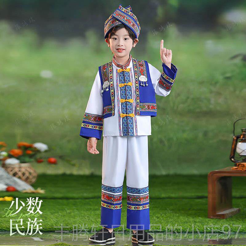 📚 正品款少男数服民族毛南族演出装表演服饰儿童舞蹈合唱女童短裙套