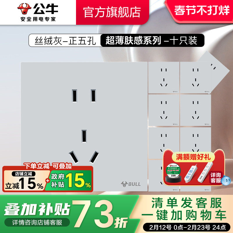 📚 公牛插座官方旗舰五孔插座面板插座暗装10A多孔G57超薄十只装