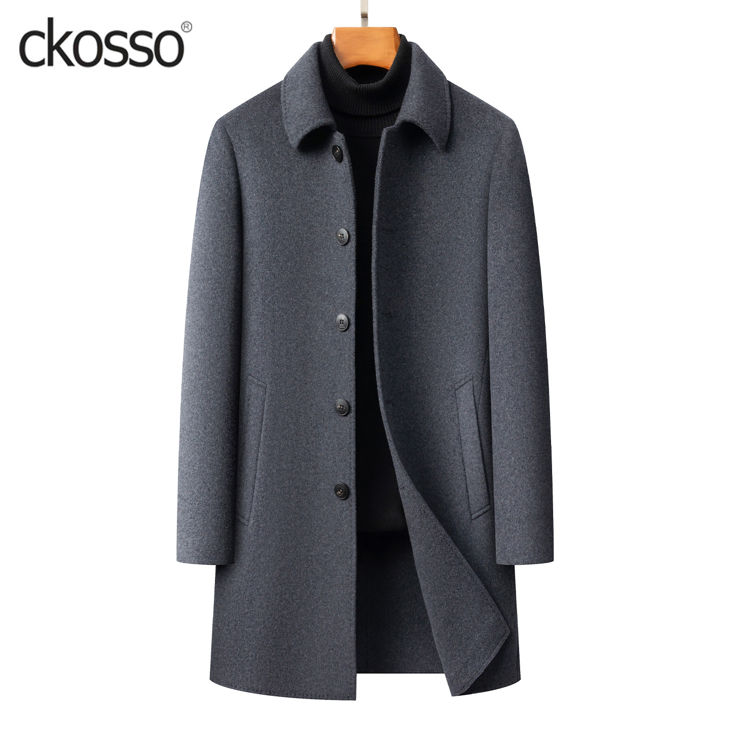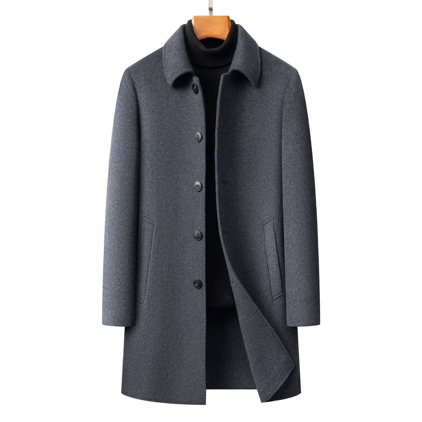 📚 羊毛呢外套男士中长款翻领扣子商务行政男装冬新款高端双面绒大衣