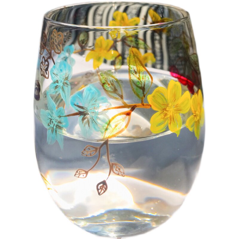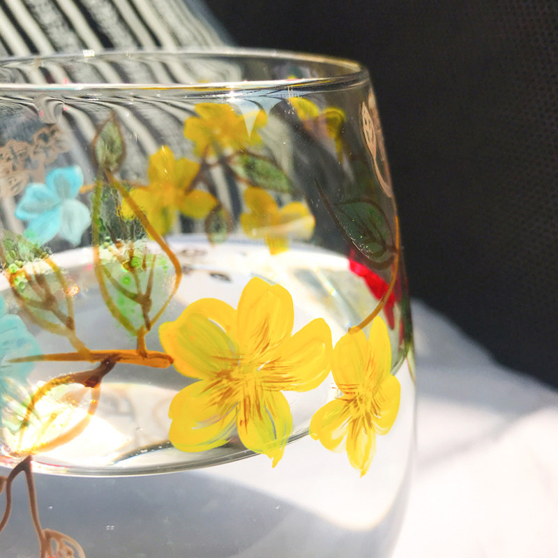 圆形大肚水杯玻璃杯彩绘