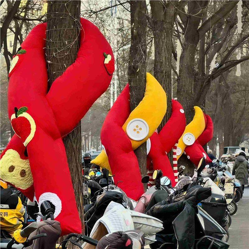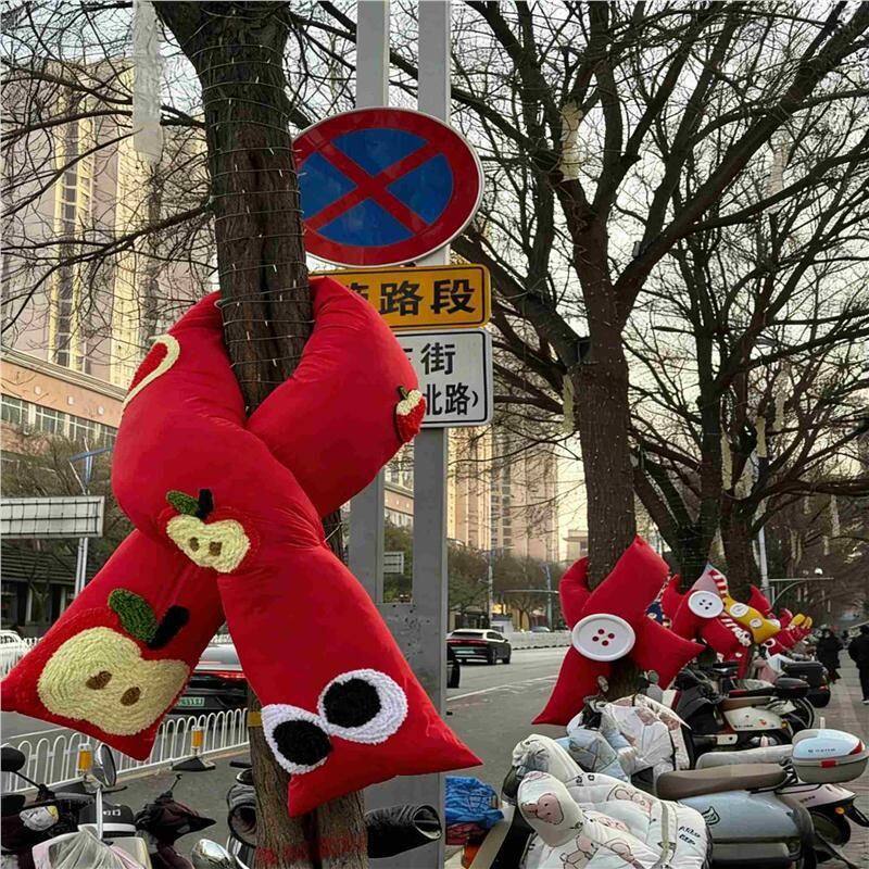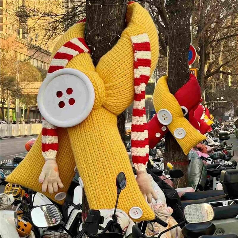 📚 冬季大树围巾装饰道具公园学校街区大树美陈造景挂饰卡通红色围巾