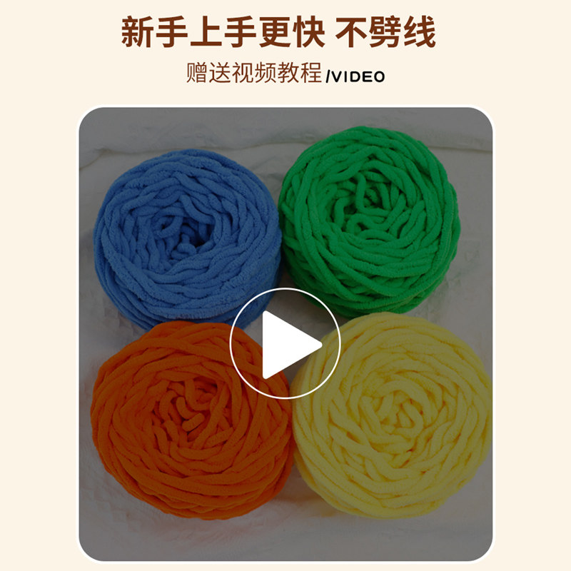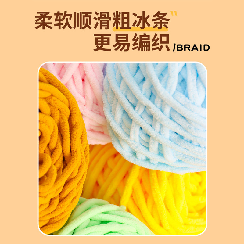 📚 彩色冰条线粗毛线团勾拖鞋手工编织diy冰线条钩鞋专用线包包玩偶