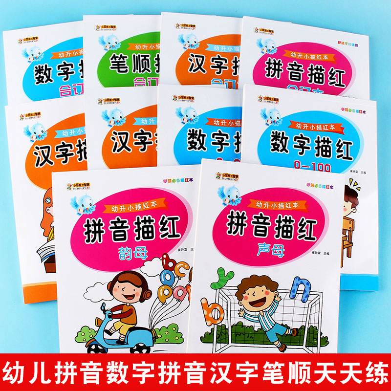 📚 学前描红数字汉字拼音声母韵母笔画描红儿童学写100以内练字本儿园中大班学前幼升小初学者小学生一笔一划数字描红练字帖整合教材