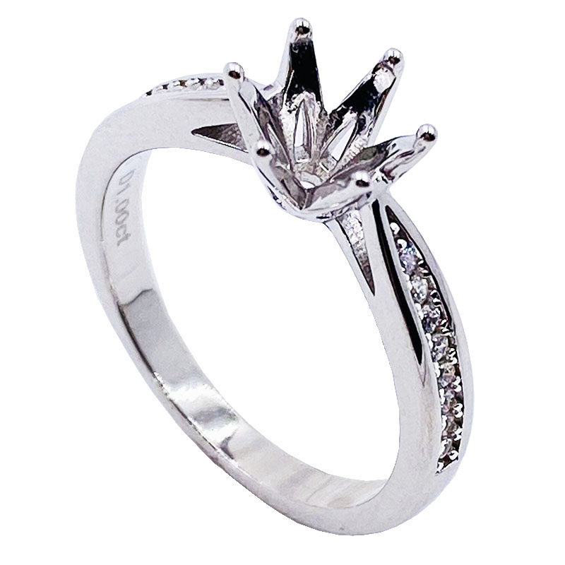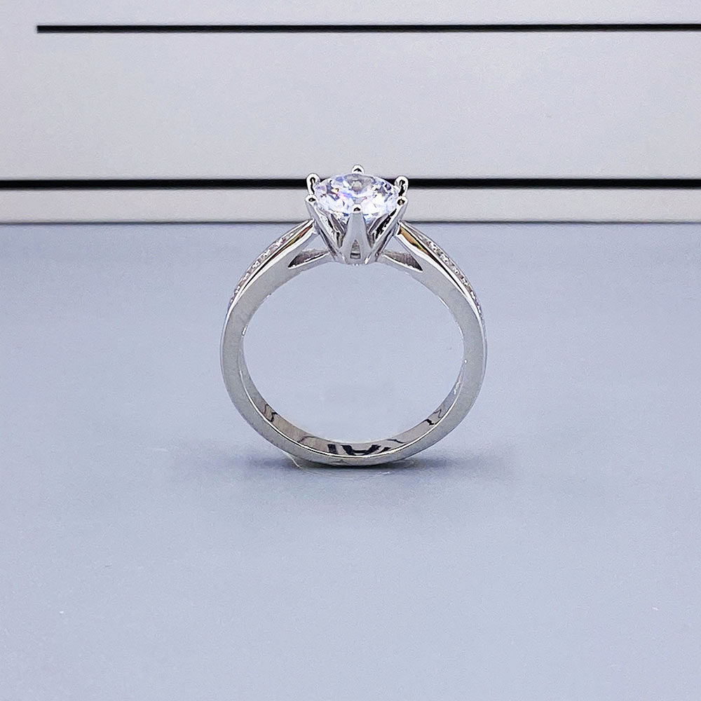 📚 边钻六爪莫桑钻镶嵌戒托闭口925银戒指空托女30分-2克拉钻托银托