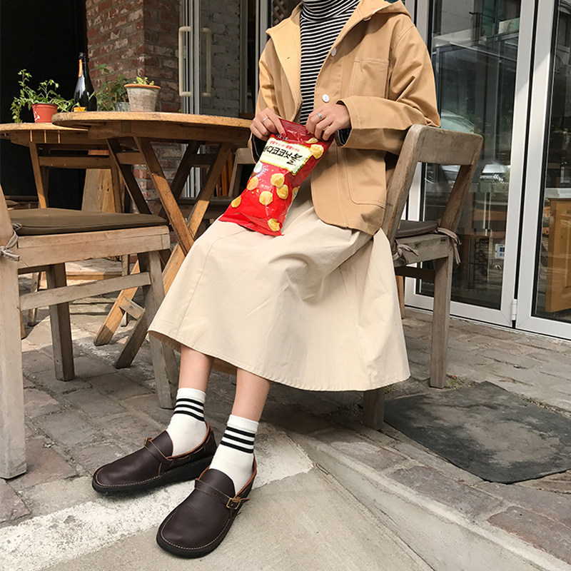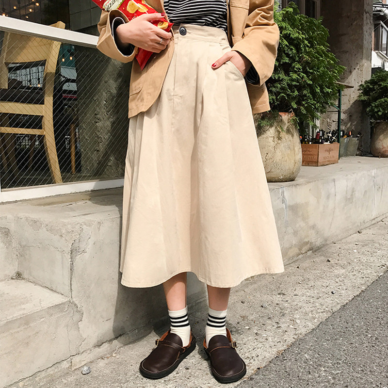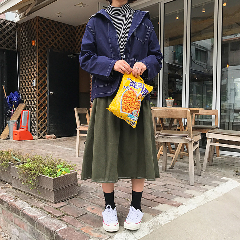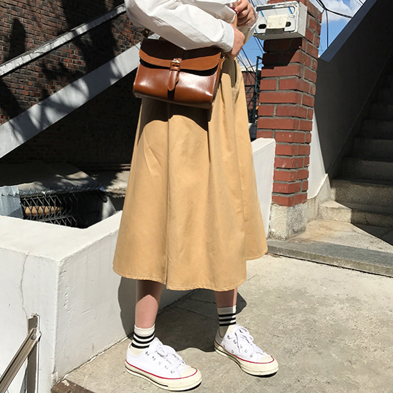 📚 自制工装半身裙日系中长款a字群松紧高腰复古港味原宿冷淡风学院
